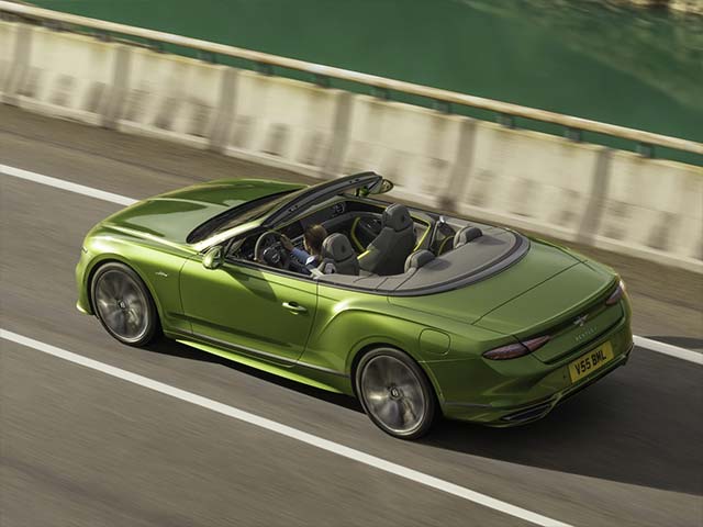 敞篷版 Continental GTC Speed 与轿跑车一起推出,0-60 英里/小时加快时刻仅为 3.2 秒,0-100 公里/小时加快时刻为 3.4 秒,最高时速被电子约束在 177 英里/小时(285 公里/小时)。敞篷车装备了 Bentley 的七弓织物车顶体系,有七种外观色彩可供挑选(包含粗花呢),可在时速高达 30 英里/小时(48 公里/小时)时在 19 秒内打开。